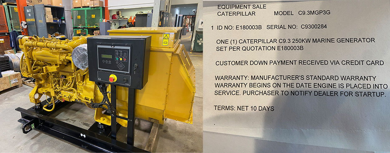 3MGP3G, 250 KW, zero hours. Located in Anchorage. Asking $72,000 OBO, call John at 907-440-0923.
