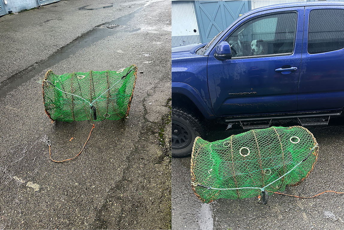 They are 80 lbs x 40 inches, pots are located in Kodiak and selling for $125.00 each, $160.00 each if delivered to Seattle. For more information call 907-942-1282