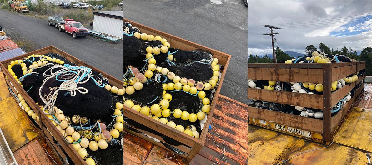 200 fathoms long, 8 strips deep, 1 1/2 web, rib line. Less than 20 sets on seine. Seine has always been tarped over just removed for pictures. Asking $50,000 including the flat it's on. Can put on barge and ship. Call (907) 305-0776.
