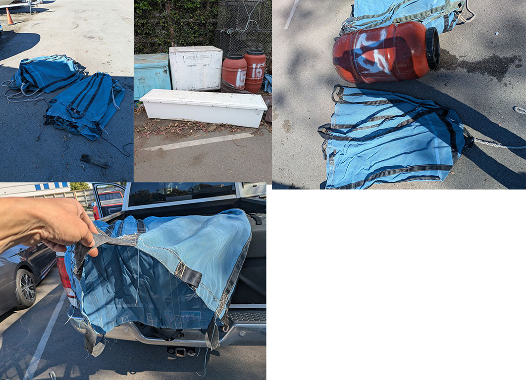 14 trailer bags, good condition, all the lifting straps are in good shape. Unsure of the brand, can't seem to find any label. Boat dock storage locker. 96" long, 22" wide, 24.5" tall. It's in great shape, lockable with stainless hardware. Fiberglass construction. Dickinson Bristol diesel stove, good condition. Make an offer on either or all, mostly just cleaning out the storage bin. Located on the California central coast. Email burnskiez@gmail.com