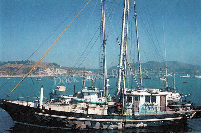 64'x18.5' steel schooner rigged as combination LL/pot/troller, built in 1984. Cat 334 rated at 250 hp. MG 509 gear w/ 4.5:1 ratio. John Deere 4219 30 kw and Isuzu 4.5 kw auxiliaries. Packs 80k lbs in insulated, polyurethane coated fish holds. 25 ton Bohn blast freezer. Stainless steel tuna gurdies, pot and LL haulers. 4400 gallons fuel capacity and 600 gallons fresh water. Electronics include GPS, VHF, SSB, (2) radars, sounder and autopilot. (4) berths in (2) staterooms. Asking $275,000.
