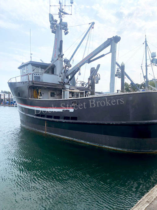58’x22’x10’ steel combination vessel built in 1986 by Mid Coast Marine. New Yanmar main rated at 755 hp w/ completely rebuilt Twin Disc 5170 gear. John Deere 4045 65-kW and John Deere 4039 42-kW gensets. Packs 130k lbs salmon in main hold, plus bait freezer. 27 ton RSW system. New 2.75 knuckle crane. Warren Junes 24” crab block, bait chopper, 8” seine boom, Marco 26” and Marco 24” LL blocks. Includes complete deck gear for tendering, crab, pot fishing, hook and line, bait shed and wave wall. Extensive electronics package, including Simrad down sounder for OLEX, radar, Nobletec, (3) VHF, new Simrad autopilot and more. Full galley w/ (6) berths. Available to buyer (500) fully rigged Trilogy crab pots. Inquire for survey and equipment list. Reduced to $1,750,000.