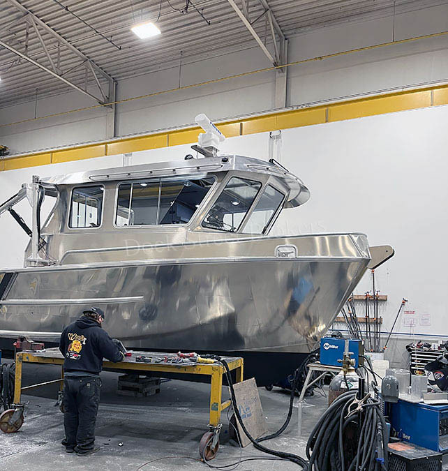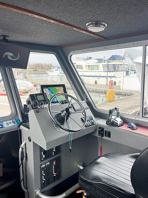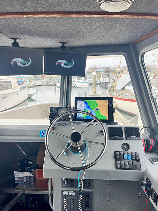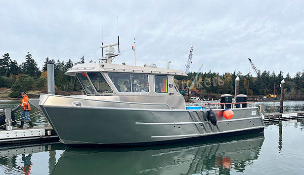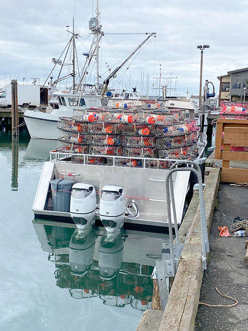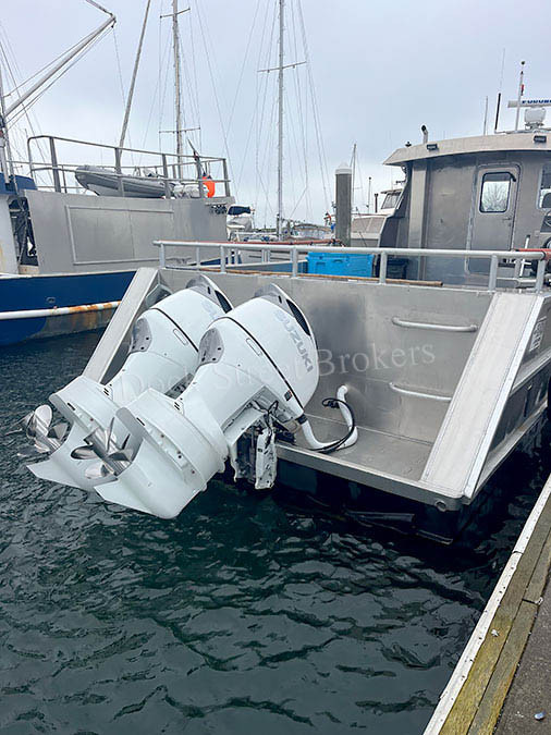 36’X13’ Aluminum crabber built by Velocity Marine in 2022, like new. Twin Suzuki 350 Dual prop outboards rated at 350 hp each. 850 hrs. 18 knot cruise, 35 knots top speed. MER 22Kw gen set Model MGM-KNI three-phase gen set with front mounted with Pitts clutch. 300 gallons gas fuel capacity, 100 gallons diesel fuel capacity. Deck equipment includes,Warren Junes 17” block and davit, Junes line coiler, 1.5 “ wash down pump. Dickinson cook top stove, fridge, sink, electric hot water tank, electric heat, enclosed head with space for shower, (2) berths fwd. Electronics include VHF, computer with 2 large screens, Furuno Radar,and Nav Net. Lots of freeboard and deck space. Vessel rides extremely well in windy conditions. Vessel built for inside and outside waters. Includes new aluminum Venture 21k# three axle trailer. $435,000.
