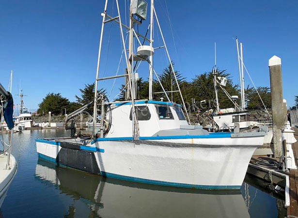 27’5”x10’2” fiberglass crabber/troller built by R. Thomas, Brookings, OR in 1972. Detroit 353 rated at 103 hp, new in 2008. Borg Warner model 71-C reduction gear. Dry fish hold packs 2400# in (8) 300# boxes plus spillage Slush tank insert for salmon. Crab gear includes Warren Junes 15” crab block, SS articulating davit and (400) 36” crab pots. Salmon gear includes aluminum A-frame trolling poles, leads, (2) 3-spool Simplex gurdies and davits. Gresen hydraulic pump w/ Klutchmaster manual control. Electronics include Garmin GPS, VHF, radar, sounder and plotter. Includes CA450 pot permit, CA salmon permit, gear and safety equimpment. Inquire for survey. Asking $136,500 for everything.