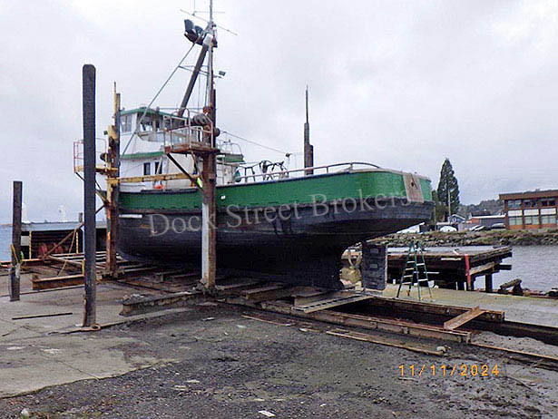 58’x17.5’x7.5’ wood crabber built by Peterson Boat Co. in 1950. GMC 8V92 main engine rated at 365 hp, rebuilt in 2023. Allison gear with 3.07:1 ratio. 35 kW Isuszu 4 cyl gen set. 1,300 gallons fuel capacity in (2) tanks. Packs 24k# dungeness crab in (!0 fiberglass fish hold w/circulation. Includes crab davit and hauiler, bait chopper and sorting table available. (5) berths, stove, fridge, sink, and heater. Electronics include (2) VHF, GPS, radar, sounder, plotter, and Furuno autopilot. Call for survey. Asking $150,000.