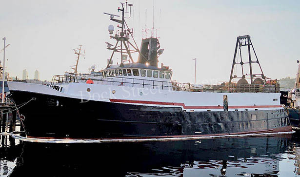 124’x32’x11’ factory trawler built in 1979 by Marine Industries Northwest. Man B&W Alpha model 10V23LU main engine rated at 1,450 hp. Alpha reduction gear. Twin 250 kW Cat 3406 B gensets. Fully operational factory. Approximately 190mt capacity for finished, frozen product, in 10K combined cubic feet. Freezer unit by LRC Coil Company, Copeland compressor. Sabroe cargo refrigeration system. 1,800 square foot trawl deck. Fully modernized wheelhouse with trawl station. Call for survey. Asking price reduced to $300,000.