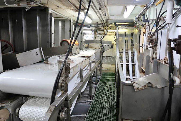 132’x32’x8’ steel factory trawler built in 1983 by Bender. General Electric 8V228 marine diesel electric main engine rated at 1,753 hp, raw water-cooled. Man B & W Alpha 27V 014 marine gear with 2.68:1 ratio. Cummins KT19 and Cummins KTA 19G2 gen sets make 470 kW each. Highland Refrigeration R22 systems with 150 hp Toshiba and 100 hp Weg compressors and coiled evaporator chillers. Capacity for 240k# frozen product in cargo hold measuring 10,920 cft. Processing capacity of 49 mt per day. (2) live tanks on trawl deck with 757 cft capacity per. 2,000 sft trawl deck. Trawl station in pilothouse aft. Accommodates appx (13) with all amenities. Full electronics package. Call for survey. Asking price reduced to $400,000.