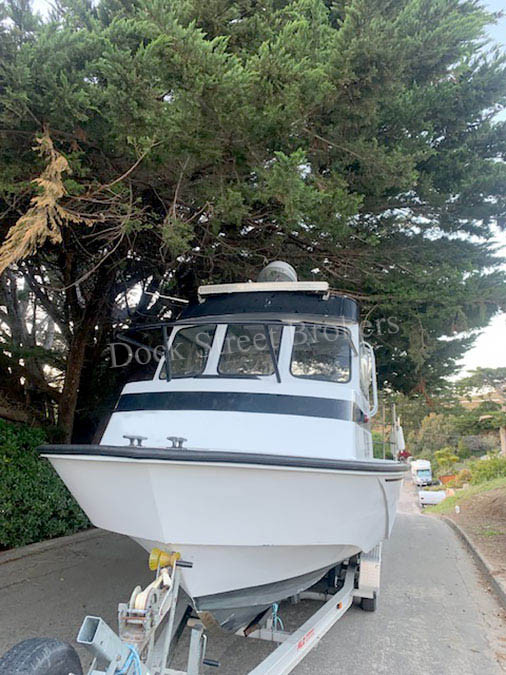 27’x10’x2’ 1988 Boston Whaler built for the Navy w/ integrated aluminum house and rigged for longline and slinky pots. Twin Honda BF225 outboards, 225hp each w/ approx. 1,800 hours. Cruises at 22 kts and does 30+ kts WOT. Fuel tank capacity of 160 gallons. Equipment includes GX-390 13hp gas engine w/ hydraulic power pack, 15” Junes block, and picking boom w/ lifting winch. Electronics include GPS, VHF, radar, and sounder. Enclosed V-berth. Includes 2006 Ace triple-axle trailer. Very unique vessel in excellent condition. Inquire for more information. Asking $95,000.