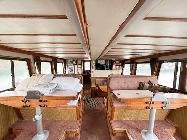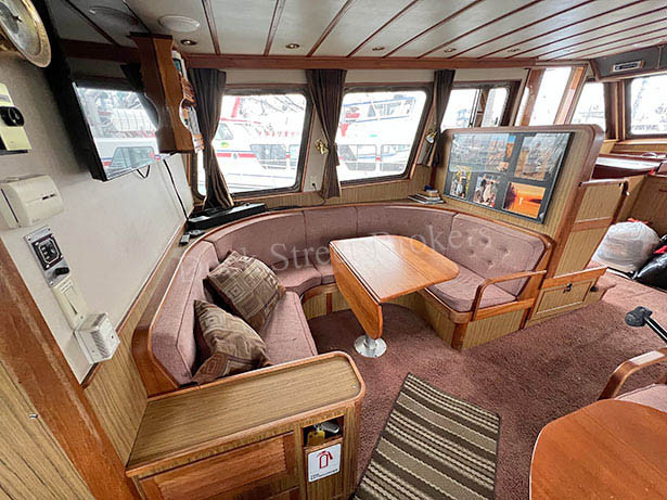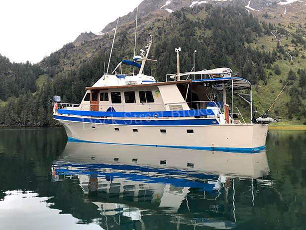 60’x17’x8’ fiberglass Little Hoquiam charter/pleasure vessel built in 1992. Twin CAT 3208T mains rated at 300 hp each, both w/ Twin Disc 506 gears. 2019 Northern Lights 9kw genset. Fuel capacity of 375 gallons in (2) tanks. 9.5 kt cruise at 1,600 RPM burning 8 kts. Deck equipment includes 12” Hydroslave line hauler, Solas 4.8m RIB w/ 30 hp Suzuki outboard, and hydraulic skiff crane. Electronics include Sitex Explorer Plus GPS/plotter, (2) VHF, SSB, Furuno radar, Sitex sounder, Robertson AP200 autopilot, and 3000w inverter . Galley w/ salon, (4) staterooms w/ total of (9) bunks, (4) heads, shower, hot water, and diesel stove. Survey available. Asking $375,000.