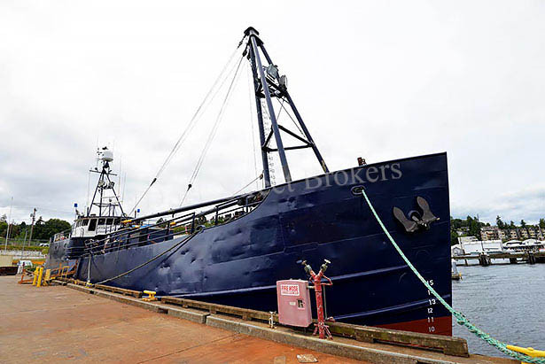 156’x30’x10.6’ steel, catcher processor, longline vessel, built for the Navy by Ira Bushey and Sons in 1944. Converted to LL, freezer processor in 2002. Cat 3512 main rated at 1280 hp w/ Twin Disc MG530 gear. (2) Cat 3406 w/ 320 kW gensets, plus backup Perkins gen. Process and freeze 75k lbs per day w/ 750k lbs freezer capacity. Factory and freezer equipment intact. Fishing equipment removed. Approx 53k gallon fuel capacity in (12) tanks and 1,822 gallons fresh water in (1) tank. Redundant electronics and communication equipment. Commercial galley. Accommodations with (25) bunks. Participated in USCG ACSA program. Survey available. Asking $700,000.