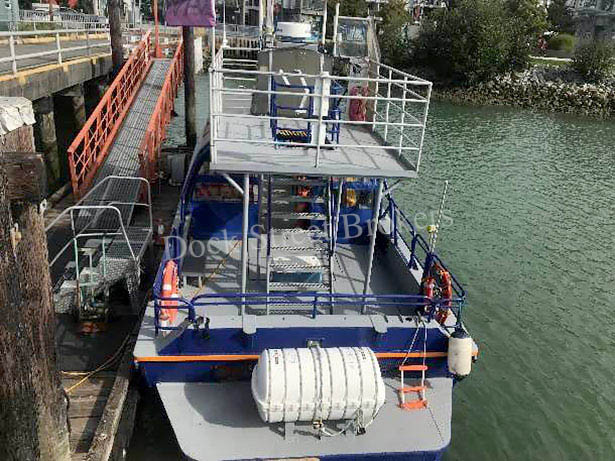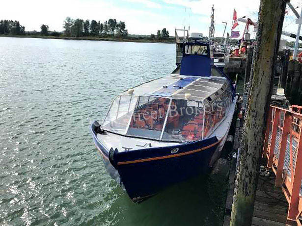42’x12’x3’ aluminum whale watch vessel built in 1993 by Thompson Bros. Volvo TAMD 71B main engine rated at 400 hp. Makes 25 knots fully loaded at 11 gph fuel consumption. 450 gallons fuel capacity in (1) tank. Heated house with galley and marine head. 25-man Servitec life raft and supply of adult and child life jackets. Electronics include (3) VHF, GPS, computer, radar, and sounder. Asking $235,000 CAD.