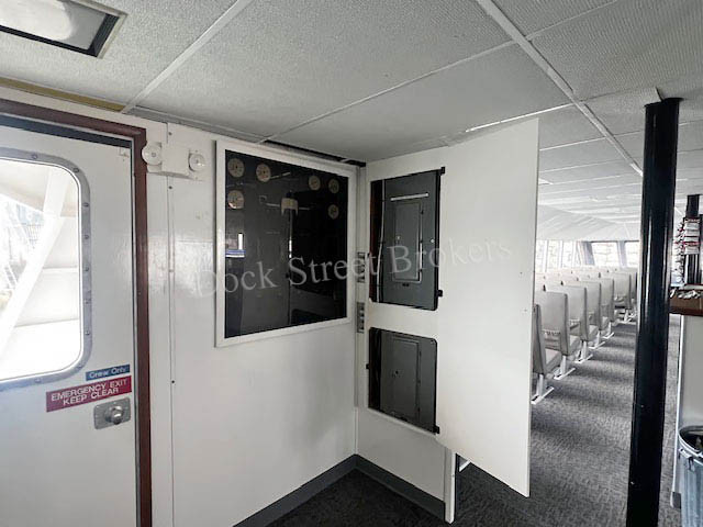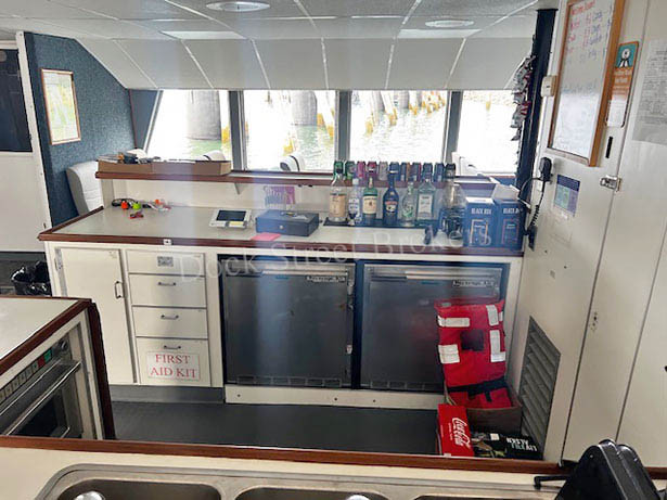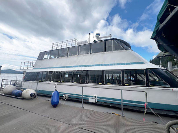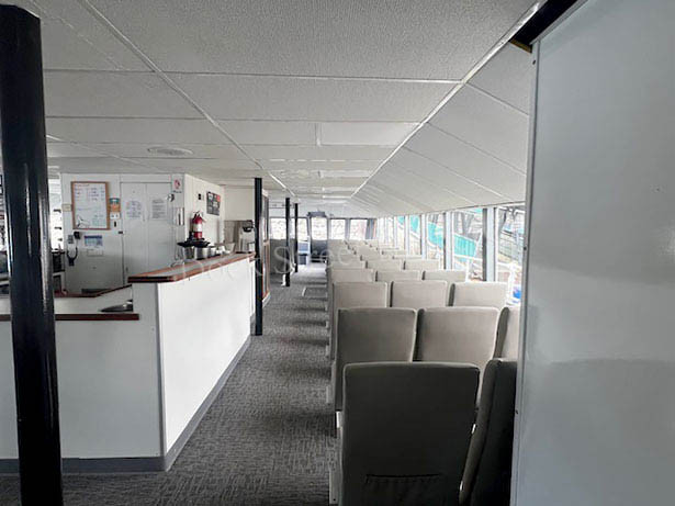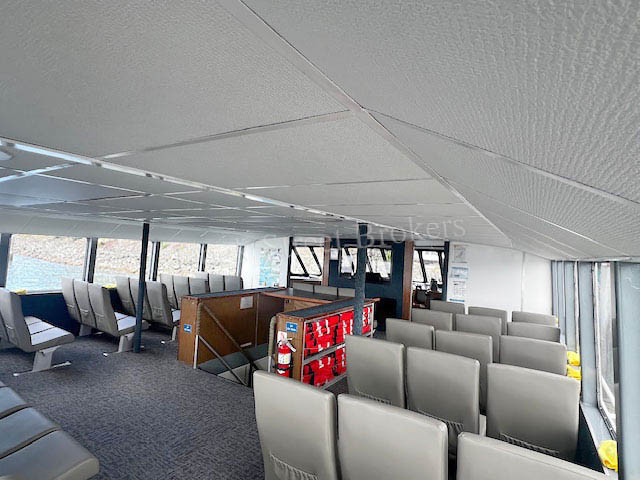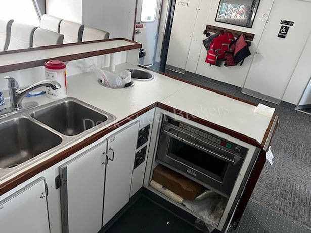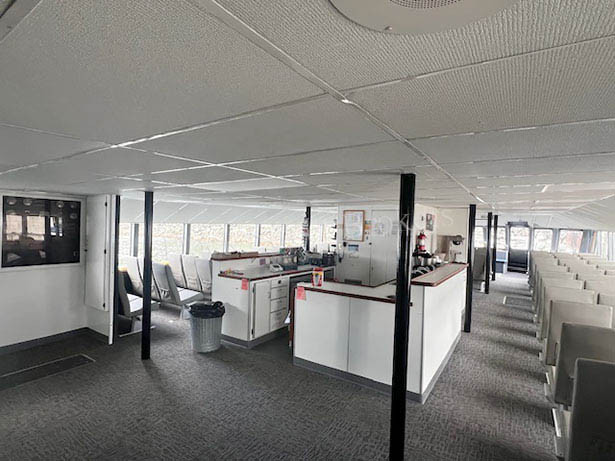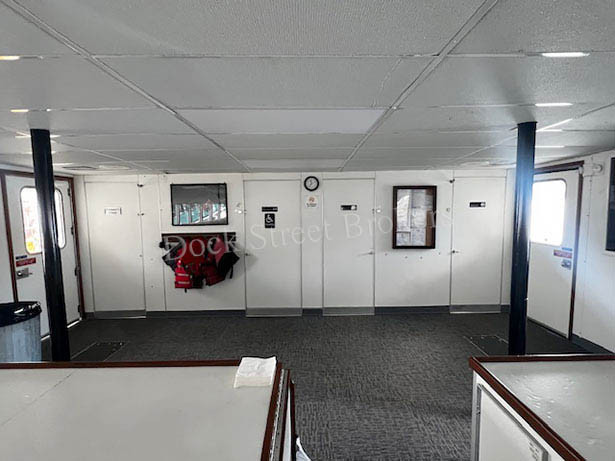 79’x28.5’x3’ aluminum, Subchapter T, passenger carrying catamaran, built by Nichols Brothers in 1984. Makes 20 knots at 90 GPH. Current COi for 139 passengers, plus 4 crew. Twin Lugger L6170A-RT mains each rated at 700 hp. Twin Disc MGN80-1 gears w/ 2.51:1 ratio and 5-blade props. (2) Northern Lights/Lugger 40kW auxiliaries. Recent superstructure attachment retrofit completed by Allen Marine. (2) fuel tanks w/ 1300 gal combined. (2) observation decks and modern seating for all passengers. Main deck galley w/ serving counter, (2) beverage fridges, commercial microwave oven, hot water, and sink. (3) separate bathrooms w/ Headhunter marine toilets and sink. Electric forced air heaters in common areas and windshield defrosters. Updated electronics package. Call for details. Asking $3,975,000.