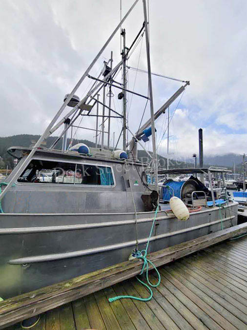 35’x11.5’x4’ aluminum gillnetter/crabber/longliner built by BC Packers in 1979. Isuzu 6BG1T main engine rated at 180 hp. Twin Disc 5050 gear. Makes 7.5 knots at 2 gph. 1500 watt Firmnan generator. Packs 10k# in (3) insulated fish holds. Deck gear includes net reel w/levelwind, 12” hauler and davit, lead slinger/roller, 3” aluminum boom w/15k# hydraulic winch, topping and vanging, and aluminum bait shed. Berths in fo’c’sle, galley w/stove, and head. Electronics include VHF, GPS, radar, sounder, plotter, and ComNav autopilot. Asking $95,000.