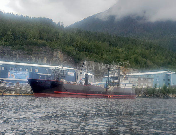 126’x30’x12’ steel house-aft crabber/tender vessel built in 1949 by FB Walker and Sons, Inc. Twin Caterpillar 3408 DI main engines rated at 365 hp each. Twin Disc MG514 gears with 6:1 ratio. Twin 180 kW Caterpillar 3306 TA and (1) 40 kW John Deer 4045DFM70 gensets. Packs 390k# of pink salmon in (3) insulated fish holds. Deck-mounted 30 ton and 60 ton RSW systems. 32k gallons fuel capacity. Full salmon tendering package including pump, sorting table, and dewatering boxes. Aurora knuckle crane. Electronics include (3) VHF,(2) radars, (2) GPS, (2) plotters, and Robertson autopilot. Call for survey. Asking $625,000.
