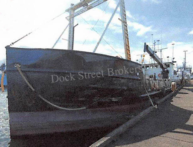 112.5’x26’x8’ steel tender vessel originally built in 1939 by the US Navy, converted in 1985. GMC 1671 main engine rated at 700 hp. 250 kW Caterpillar 3306, 150 kW GMC 871, and 90 kW Caterpillar 3304 gensets. Packs 400k# in (4) insulated fish holds. (2) 50-ton RSW systems. Equipment includes port side knuckle crane, starboard side swing crane, Double-chamber Canavac fish pump, sorting table, and dewatering boxes. Accommodations include full galley, head w/shower, and (3) staterooms with (6) berths total. Electronics include (2) VHF, GPS/plotter, (2) sounders, AIS, and ComNav autopilot. Call for survey. Asking $200,000.