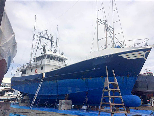 99’x25’x12’ steel tuna vessel built by Johnson in 1995. Caterpillar 3412 main engine rated at 525 hp. Twin Disc 510 gear. 28k gallons fuel capacity in (7) tanks. (2) 75 kW Caterpillar 3304 and 20 kW Isuzu gensets. Packs 200k# blast-frozen tuna in (7) insulated holds, (6) of which are tanked. (2) Carrier 5F60 compressors for main holds, (1) Bitzer compressor for (2) holds aft. Equipment includes bow and stern trolling poles and pullers. Comfortable accommodations include captain’s stateroom, (2) crew staterooms, full galley with large walk-in freezer, (2) heads, (2) showers, water maker, and 300 gallons fresh water capacity. Electronics include (2) VHF, (2) GPS, (2) radar, sounder, plotter, sonar, and Comnav autopilot. Includes all North and South Pacific catch history since the vessel was built. Call for survey. Asking $875,000.