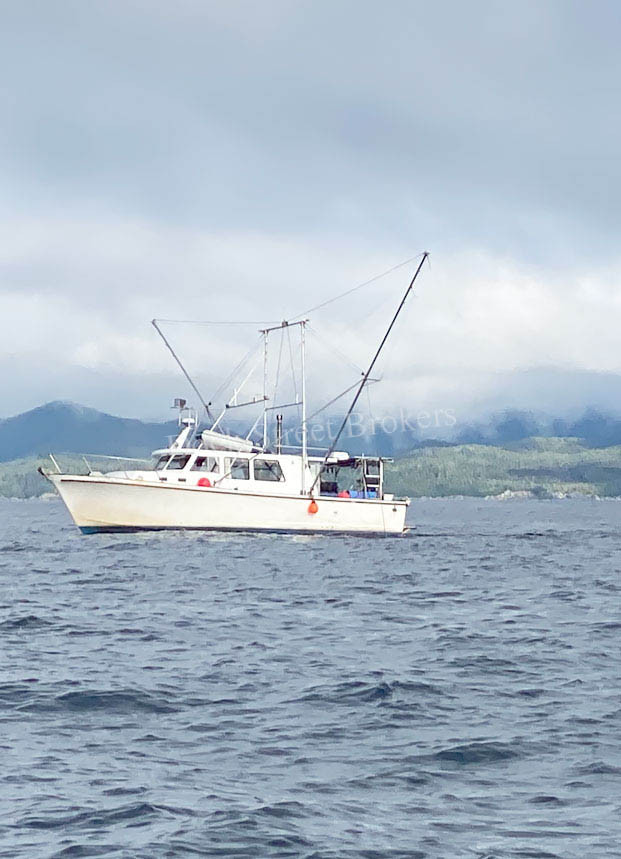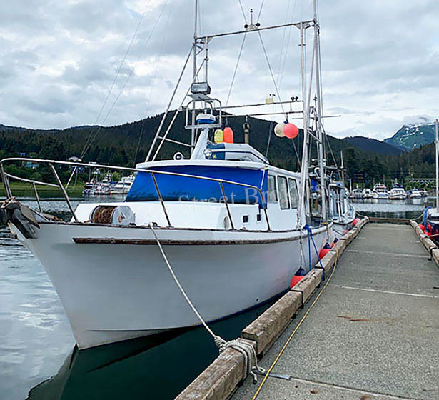 43’x14’x6’ fiberglass pleasure/troller built by Delta Marine in 1976. Twin Cat 3208 NA, each rated at 210 hp w/ Twin Disc MG 506G. Easthope gurdies, updated aluminum hayrack, trolling poles, and rigging. Packs apprx 4k lbs combined in (2) deck totes and (1) tote below deck. Recent upgrades include new deck, laz bulkhead, swim step, (2) new fuel tanks, fuel lines, wet exhaust pipe, and more. Electronics include Furuno GPS, VHF, radar, sounder, inverter, battery charger, Black Box and autopilot w/ remote. Head, shower, (7) berths, fridge, Olympic stove and Espar heater. AK troll permit available to buyer. Inquire for survey. Reduced to $150,000.