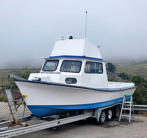 25’x8.5’x3’ fiberglass fishing vessel, built by Ken Kraft in 1987. Cummins 6bt main rated at 250 hp w/ 3,000 hours and ZF gear. 90 gallon fuel capacity in (2) tanks. Does 19 kts. Electronics include GPS, VHF, sounder, plotter, and autopilot. Asking $31,000.