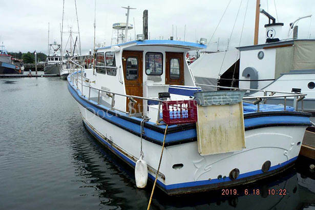 33’x11’x5’ fiberglass Westport charter vessel built in 1972. John Deere 6068 main rated at 225 hp w/ Twin Disc 506A gear. Fuel capacity of 240 gallons in (2) fiberglass tanks. Cruises at 11-12 knots. Electronics include Garmin 192C GPS/plotter/sounder, Garmin 3010C radar, Icom VHF, Cobra CB, and (2) LED deck lights. Accommodations include V-berth, head, galley sink, and adequate seating. Survey available. Reduced to $39,000.