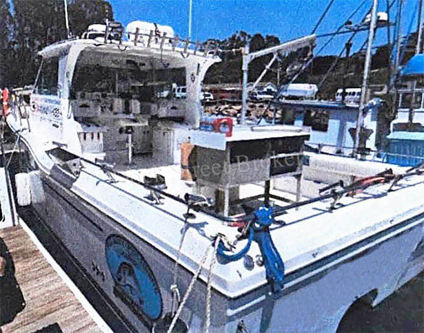 34’x12’ fiberglass catamaran charter boat built by Baha Cruisers in 2001. (2) Cummins 370B w/ 600 hp combined. Makes 25 knots. Electric crab block, anchor and down riggers. Live well and wash down hose. Hydraulic steering. Electronics include Power M22 battery charger, sounder, sea-temp, sonar, VHF, and Ray Marine GPS, plotter, radar and auto pilot with remote. Microwave, (2) berths, head w/ sink and shower. Inquire for survey. Asking $80,000.