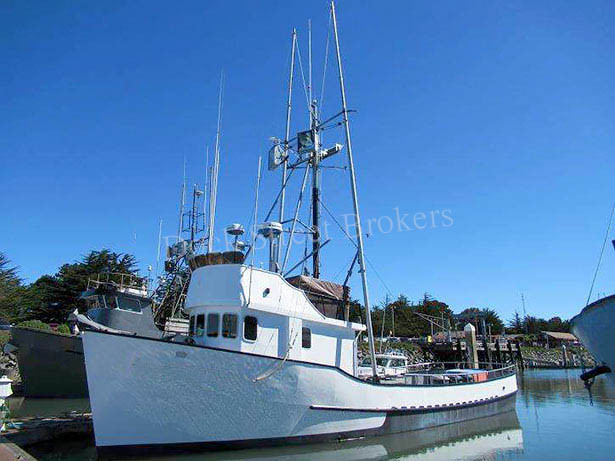 53.1’x14.7’x8’ steel crabber/troller combo vessel, built in 1967 by Wilwerding. 250 hp Cummins 855 main w/ Twin Disc 509 gear. Isuzu C240 20kw genset. Fuel capacity of 2,600 gallons in (3) tanks. Fish hold packs 20 tons tuna, and has 10k lb crab tank insert. Spray brine system w/ (2) compressors. Deck equipment includes crab block, tuna pullers, salmon gurdies, and aluminum tuna landing table. Electroncs include GPS, (6) vhf, SSB, (2) radars, sounder, (3) plotters, and ComNav autopilot. INCLUDES CA/OR salmon permits. Also available: CA 500 pot crab permit and (500) rigged crab pots. Survey available. Asking $375,000.