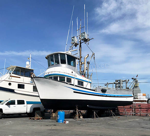 47’x14’x5’ fiberglass Delta built in 1977 and rigged for crab and troll fisheries. Recently stretched and added aluminum top house. Cummins 855 main rated at 360 hp w/ Twin Disc 509 gear. Northern Lights 12kw genset. Fuel capacity of 1,000 gallons in (2) tanks. Foamed/glassed fish hold packs 38,000 lbs, and crab tank insert hold 12,000 lbs. Deck equipment includes (2) 17” crab blocks, (2) sets of aluminum salmon poles w/ stabis, (3) sets of salmon gurdies, and lots of extra gear and spare parts. Electronics include (4) GPS-plotters, (3) VHF, SSB, radar, sounder, ComNav autopilot, and Wesmar sonar. Includes CA salmon permit and CA 400-pot crab permit w/ over (400) fully rigged pots and lots of extras. Turn-key package, inquire for info. Asking $550,000 for everything.