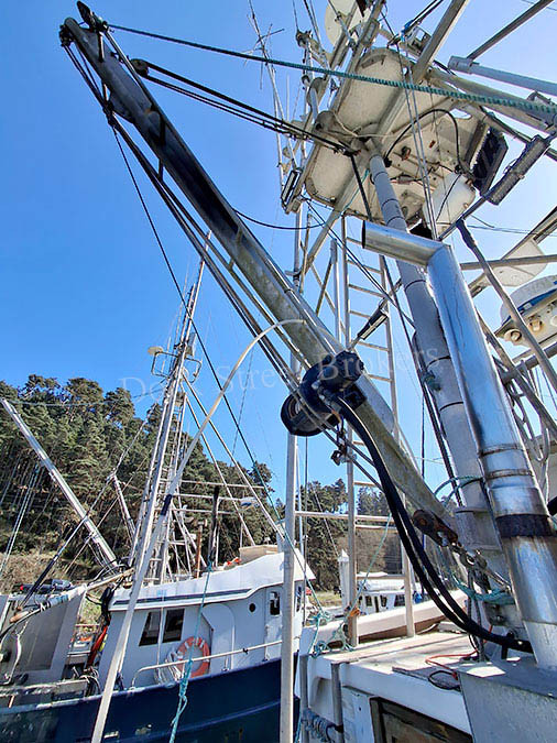 40.9’x13.9’x6’ fiberglass crabber/troller/tuna vessel, built by American Commercial in 1983. Detroit 671 main rated at 200 hp. Twin Disc 506 gear. Champion 400 gas generator. 1,600 gal fuel capacity in (2) tanks. Packs 8 tons salmon and 6,400 crab in aluminum insert. Spray Brine system w/ hydraulic Thermo King compressor. Deck equipment includes 3-spool Simplex gurdies, 17” Junes crab block, crab davit, bait chopper, salmon/tuna landing tables, and more. Excellent electronics. INCLUDES CA/OR salmon permits. Available with 250 pot CA crab permit good to 56’ mloa. Inquire for more info. Asking $225,000.