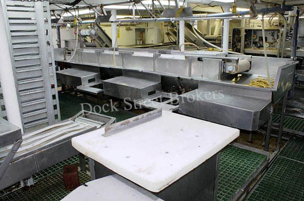 124’x32’x11’ factory trawler built in 1979 by Marine Industries Northwest. Man B&W Alpha model 10V23LU main engine rated at 1,450 hp. Alpha reduction gear. Twin 250 kW Cat 3406 B gensets. Fully operational factory. Approximately 190mt capacity for finished, frozen product, in 10K combined cubic feet. Freezer unit by LRC Coil Company, Copeland compressor. Sabroe cargo refrigeration system. 1,800 square foot trawl deck. Fully modernized wheelhouse with trawl station. Call for survey. Asking price reduced to $300,000.