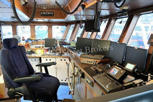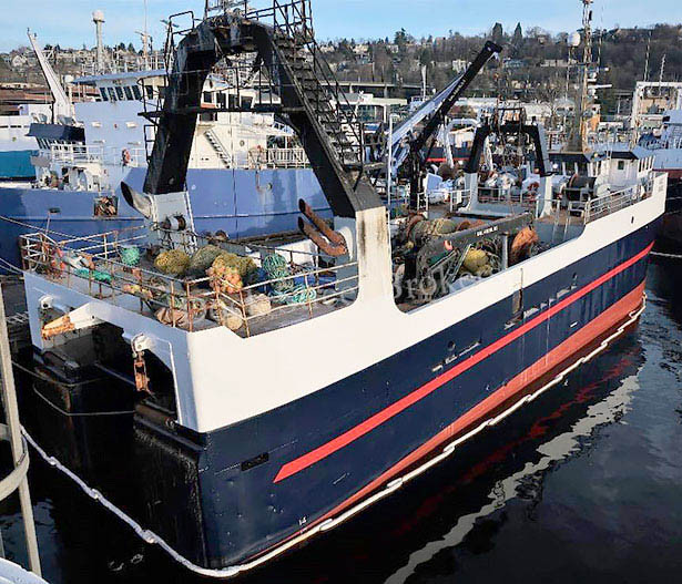 132’x32’x8’ steel factory trawler built in 1983 by Bender. General Electric 8V228 marine diesel electric main engine rated at 1,753 hp, raw water-cooled. Man B & W Alpha 27V 014 marine gear with 2.68:1 ratio. Cummins KT19 and Cummins KTA 19G2 gen sets make 470 kW each. Highland Refrigeration R22 systems with 150 hp Toshiba and 100 hp Weg compressors and coiled evaporator chillers. Capacity for 240k# frozen product in cargo hold measuring 10,920 cft. Processing capacity of 49 mt per day. (2) live tanks on trawl deck with 757 cft capacity per. 2,000 sft trawl deck. Trawl station in pilothouse aft. Accommodates appx (13) with all amenities. Full electronics package. Call for survey. Asking price reduced to $400,000.