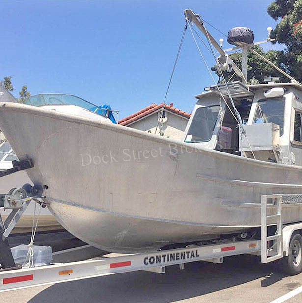 26’x8’x3’ aluminum La Conner built in 1989, rigged as dive boat and used for crab. Yanmar 6LP main rated at 315 hp w/ only 150 hours. New Bravo II outdrive. Does 33 kts WOT. Fuel capacity of 250 gallons in (2) tanks. 20 gallon hydraulic tank and all hydraulic lines are stainless steel. Deck equipment includes boom w/ winch, stainless davit, high pressure compressor, and scuba tank racks. Electronics include GPS, VHF, Simrad AP44 auto pilot, side view sonar, and Garmin 1042 radar/sounder/plotter. Includes aluminum double axle trailer. Reinforced bottom designed for beach landings. Asking $100,000.
