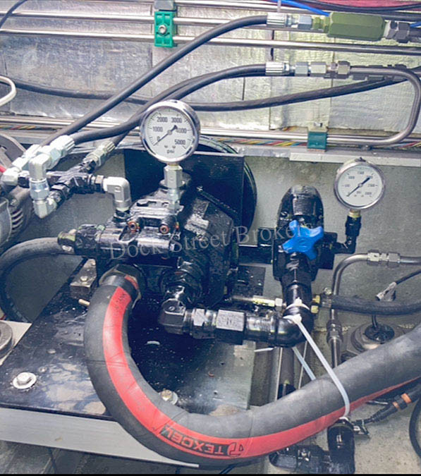 - A 20 gallon hydraulic tank provides fluid to a pressure compensated variable displacement pump that createsa systems where the flow rate is determined by the pump’s displacement and speed and can be adjusted to meet the system’s demand.