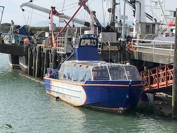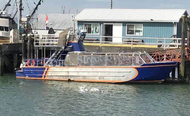 42’x12’x3’ aluminum whale watch vessel built in 1993 by Thompson Bros. Volvo TAMD 71B main engine rated at 400 hp. Makes 25 knots fully loaded at 11 gph fuel consumption. 450 gallons fuel capacity in (1) tank. Heated house with galley and marine head. 25-man Servitec life raft and supply of adult and child life jackets. Electronics include (3) VHF, GPS, computer, radar, and sounder. Asking $235,000 CAD.