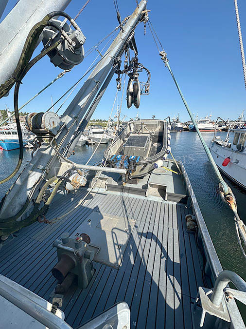58’x19’x8’ fiberglass Delta seiner built in 1982. John Deere 6125AFM75 rated at 300 hp. Twin Disc 514 gear. 65kw John Deere 4045 and 25kw Isuzu 4LE2 gensets. Fuel capacity of 2,000 gallons in (2) tanks. Packs 115,000 lbs in (3) tanked/insulated fish holds. 25-ton RSW system. Deck equipment includes deck winch, davits, 32” Marco power block, Westec 1020 submersible pump and dewatering box. Upgrades include stainless cap rails and pt/stbd guards, stainless hydraulics, rolling chocks and bulbous bow. Excellent electronics package, new in 2023. Includes 20’ Browns skiff w/ John Deere 6081 mechanical engine and (2) seine nets (450 and 325). Inquire for more info. Asking $1,400,000.