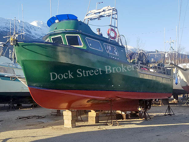 38’x11.2’x6.9’ fiberglass sternpicker built by Kachemak Marine in 1983. Cat 3208TA rated at 425 hp w/ rebuilt Twin Disc 507 gear. Packs 20k lbs in (4) updated and insulated fish holds. Kem Marine sliding reel, Kinematic levelwind and stern roller. Vickers single stage hydraulic pump w/ electric clutch. 400 gallons fuel capacity in single tank. Electronics include VHF, sounder, Garmin 3210 plotter, inverter and autopilot. Head, diesel heater, built in ice cooler and (4) berths. Includes (2) 5” nets. Call for a survey. Asking $80,000.