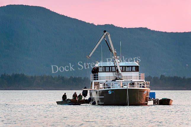 50’x24’x42” aluminum tender rigged to tender setnets and crab. Jensen design, built by Mavrik in 2015. Twin 410 hp Cummins QSL9 mains, ZF gears. John Deere 65 kW and Northern Lights 12 kW gen sets. Deck crane w/ 2k# lift at 30’ reach, 5k# compact. (4) insulated, aluminum, removable deck tanks with RSW, 80k# total capacity, sockeye. Circulation for crab. Capable of carrying 48 full totes on deck. Drop-down rails for tendering set nets and gillnetters. Electronics include radar, GPS, plotter, VHF, ComNav autopilot and more. (2) heads w/ shower, fridge, propane stove, berths in forepeak and main cabin. Inquire for survey. Asking $1,250,000.