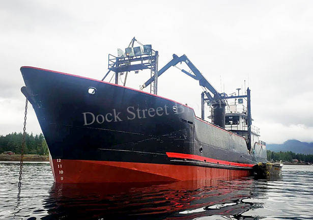 126’x30’x12’ steel house-aft crabber/tender vessel built in 1949 by FB Walker and Sons, Inc. Twin Caterpillar 3408 DI main engines rated at 365 hp each. Twin Disc MG514 gears with 6:1 ratio. Twin 180 kW Caterpillar 3306 TA and (1) 40 kW John Deer 4045DFM70 gensets. Packs 390k# of pink salmon in (3) insulated fish holds. Deck-mounted 30 ton and 60 ton RSW systems. 32k gallons fuel capacity. Full salmon tendering package including pump, sorting table, and dewatering boxes. Aurora knuckle crane. Electronics include (3) VHF,(2) radars, (2) GPS, (2) plotters, and Robertson autopilot. Call for survey. Asking $625,000.