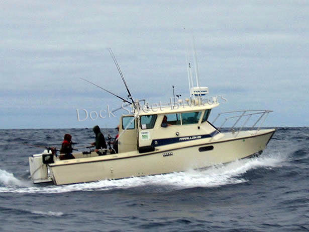 25x8x2.6 fiberglass CA salmon troll vessel and permit package built in 1991 by Farallon. GM 7.4 liter Mercurier Bluewater inboard gas main. Borg Warner/Velvet drive. Cruise at 22 knots WOT 32 knots. 2,000 lbs fish hold capacity. Commercial salmon troll gear and sport charter gear, crab davit, block and crab pots. Electronics include Standard Horizon GPS w/C-map chip, Navtrack GPS, (3) VHF, 24 mile Furuno radar, Furuno sounder and Cetec-Benmar autopilot. Full compliment of safety gear. EZ Loader double axle trailer. Contact us for a complete list of everything that comes with the vessel and a survey. Asking $84,000.