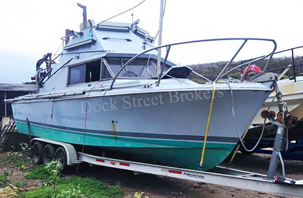 28.6’x9’x3’ fiberglass cruiser rigged for crab and trolling, built by C&M Manufacturing in 1970. Cummins 6BTA main rated at 210 hp w/ 1,700 hrs. Fuel capacity of 180 gallons in (2) tanks. Aluminum mast and trolling poles, (2) double hydraulic gurdies, crab block, and electric wash down pumps. Electronic equipment includes GPS, (2) VHF, radar, sounder, and plotter. CA salmon troll permit and All American trailer included. Asking $40,000 for the package.