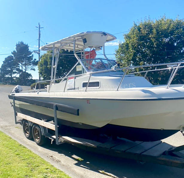 24’x8.5’x3’ fiberglass sport boat built by Wellcraft in 1978. Includes California Salmon troll permit. Volvo Penta angine rated at 350 hp, like new. Makes 28 knots. Mercruiser Bigfoot kicker. Bait well, electric down riggers, electric crab hauler, and lots of fishing gear. Electronics include VHF, GPS, sounder, plotter, and autopilot. Includes aluminum trailer. Asking $50,000 for vessel and permit.