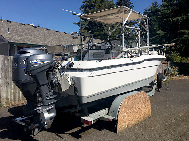 21’ salmon troller built by Bayliner in 1992. Yamaha 150 hp, 4-stroke outboard. Yamaha 9.9 4-stroke kicker. Low hours on motors. Makes 20 knots. Hold 600# of fish in (4) fish wells. 5 hp hydraulic pump. (4) single-spool Simplex gurdies. EZ Loader 4-axle trailer. Electronics include GPS, VHF, and autopilot. Includes OR Salmon Troll permit, lots of fishing gear. Asking $25,000.