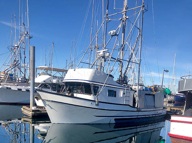 45’x13.5’x9.5’ fiberglass Sunnfjord freezer-troller built in 1975, also rigged for longline and spot prawns. John Deere 6068TFM 225 hp turbo charged main w/ 14,400 hours. Twin Disc 506 gear. 4LE2 four-cylinder auxiliary engine for a MER 24KW generator, new in 2025. Fuel capacity of 1,250 gallons in (4) tanks. Deck mounted IMS 3500 blast freezer. Fish hold packs 8-10 tons frozen product. Custom bladder bag for center of hold, and (4) 1k lb brailer bags for slushing. Includes (2) rebuilt 3-spool Easthope gurdies, longline drum, pacer pump, and drop-down shiv for longline/pots. Electronics include Furuno GPS, (2) VHF, SSB, sounder, radar, and autopilot. Head, shower, new hot water heater, and 3-bunk foc’sle. 12’ Kachemak skiff w/ 8hp mercury 2-stroke, rebuilt in 2025. Survey available. Asking $190,000.