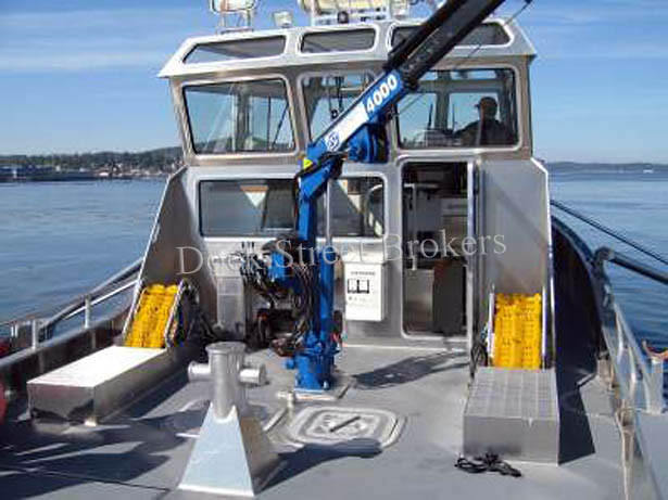 47'x16' aluminum oil skimmer/response vessel, built in 2007 by Rozema. Twin 600 hp Lugger 6140 mains, Northern Lights 9 kW gen set. Push knees, and 4 padeyes for lifting. Well equipped with Lamor 2 brush pack skimming system, 50 BBL recovery tank, off-loading pump, cherry-picker crane, (2) 1500# capstans, and tow post. Furuno 1934 radar, GPS, sounder, and plotter, plus VHF, and SSB. Very light usage since new. Call for more info. Asking only $511,000.